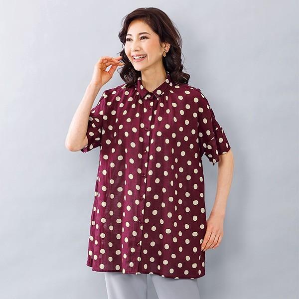 チュニック ブラウス レディース 夏 水玉プリントブラウス 50代 60代 70代 80代 ミセスファッション シニアファッション 服 京都通販 ミセスのファッション館 通販 Yahoo ショッピング